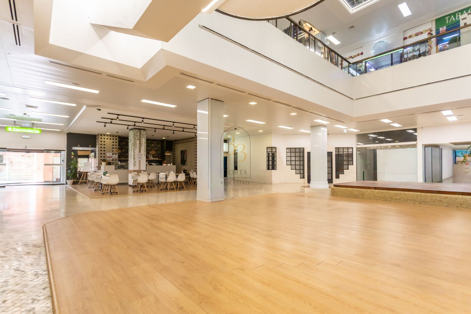 Além disso, existe a possibilidade de expandir a sua atividade adquirindo a loja em frente de 72 m², atualmente em comercialização, criando um conjunto de espaços complementares que permite aumentar a visibilidade e a presença do seu negócio na praça central.